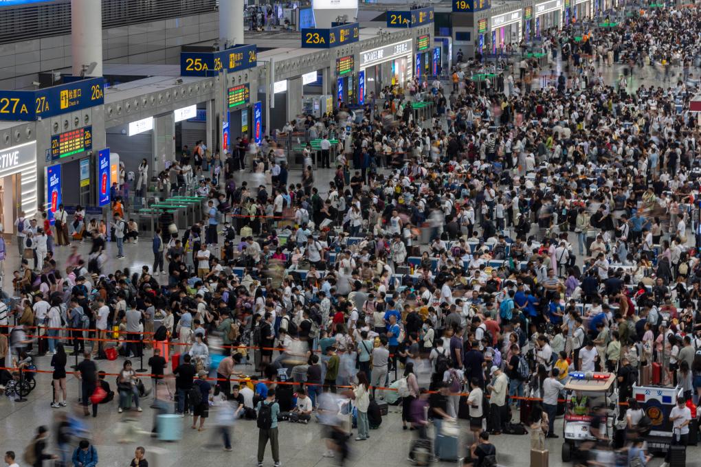 2025年10月1日,旅客在上海虹橋站候車大廳候車。當(dāng)日是國慶假期第一天,各地迎來出行高峰。新華社記者 王翔 攝