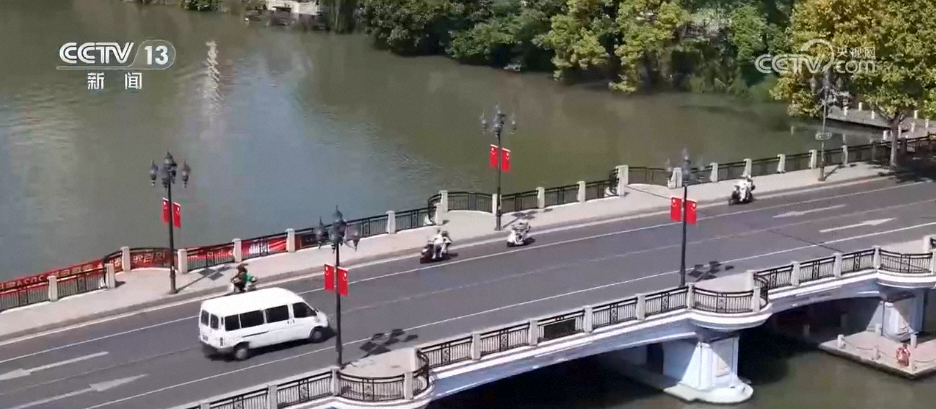 同樣,這幾天,江蘇多地也在打造濃濃的節(jié)日氛圍。在南通濠河邊,鮮艷的國旗像一簇簇跳動的火焰,與濠河的粼粼波光、兩岸的綠樹蔥蘢交相輝映,構(gòu)成了一幅流動的中國紅畫卷。