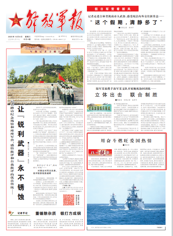 習主席指出:“愛國,是人世間最深層、最持久的情感,是一個人立德之源、立功之本?!睂娙藖碚f,愛國是本分,也是職責,是心之所系、情之所歸,它體現(xiàn)在軍人無私奉獻的汗水中、攻堅向前的腳步里。愛國從來不是虛無的,更不是一句空泛的口號,只有把對祖國的赤誠之情,落實到一崗一哨、一職一位、一言一行,苦干實干、擔當奮斗,才是最實際、最鏗鏘的愛國宣言。
