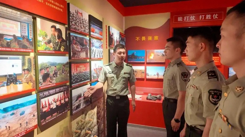 劉老莊連指導(dǎo)員組織官兵重溫連史館。