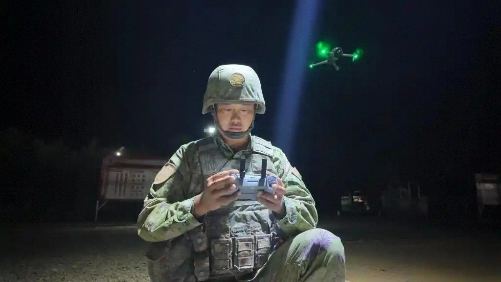 無(wú)人機(jī)手朱二帥組織無(wú)人機(jī)夜間訓(xùn)練。