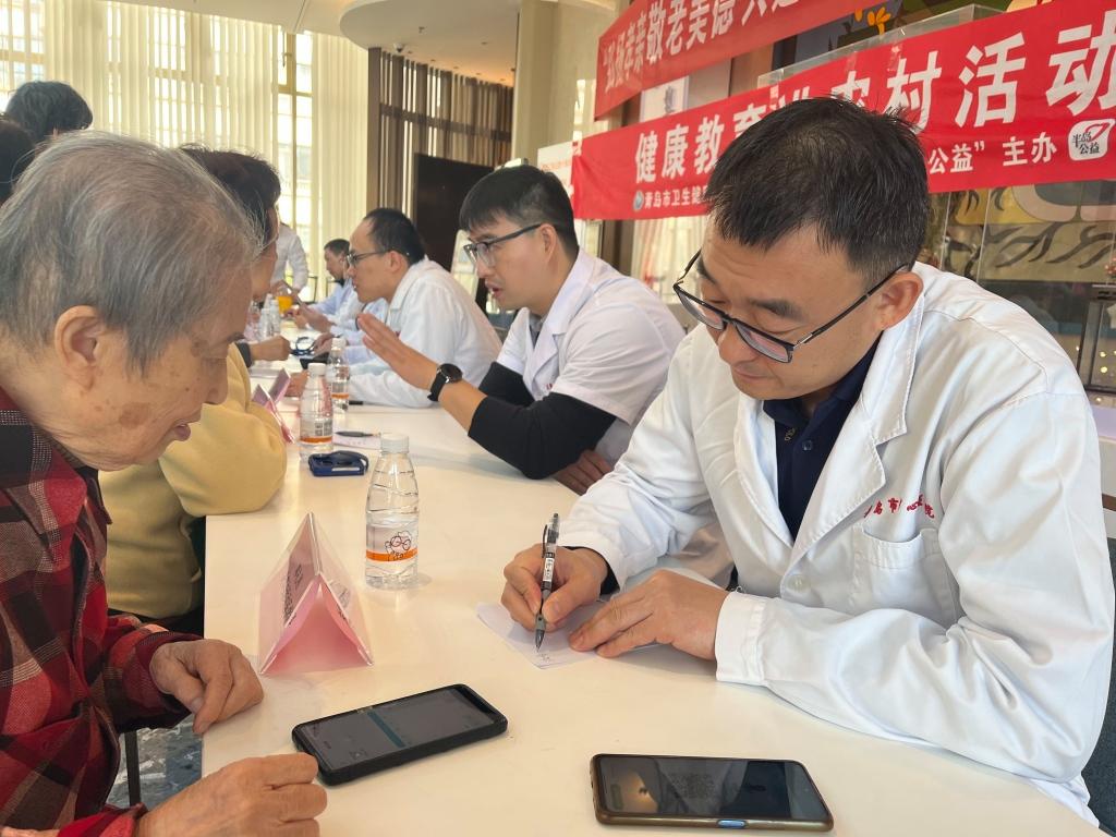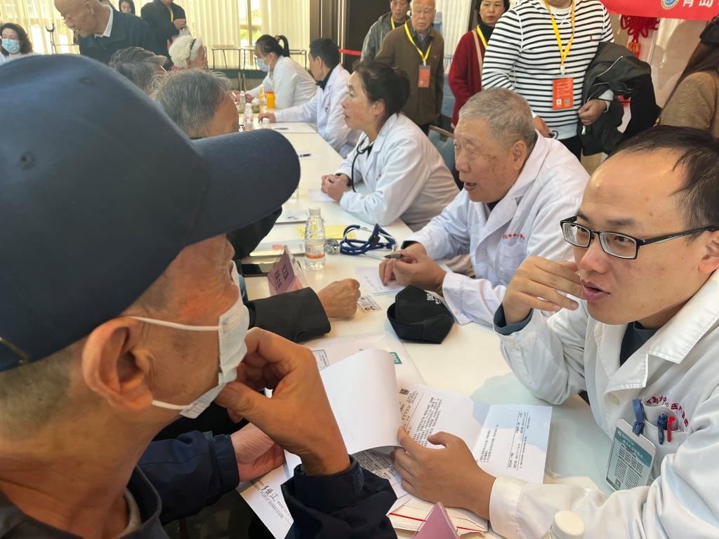 在活動(dòng)現(xiàn)場(chǎng),一幕幕溫馨的場(chǎng)景不斷上演:老人們有序地在各個(gè)科室專家答疑桌前靜靜地排隊(duì)等候;醫(yī)生們或蹲或坐,耐心地傾聽每位老人的訴求,細(xì)致解答他們的疑問……