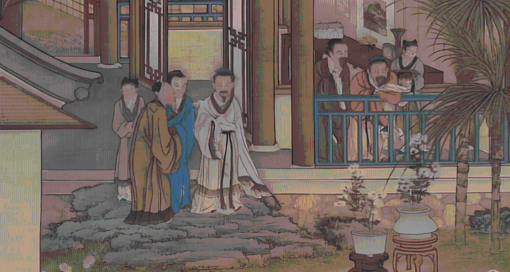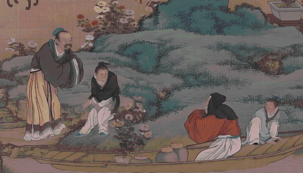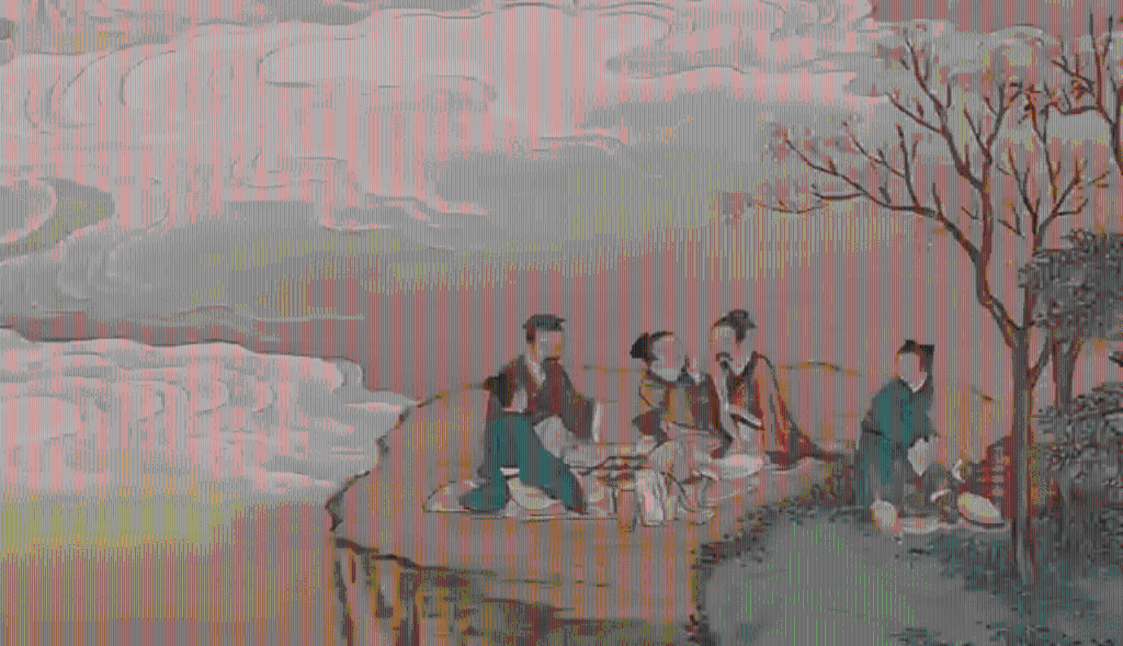 興致高昂的才子們?nèi)逑嘌?,同飲菊酒,共賞黃花,伴著酒意,吟詩賦詞,共同度過這美好的一天。