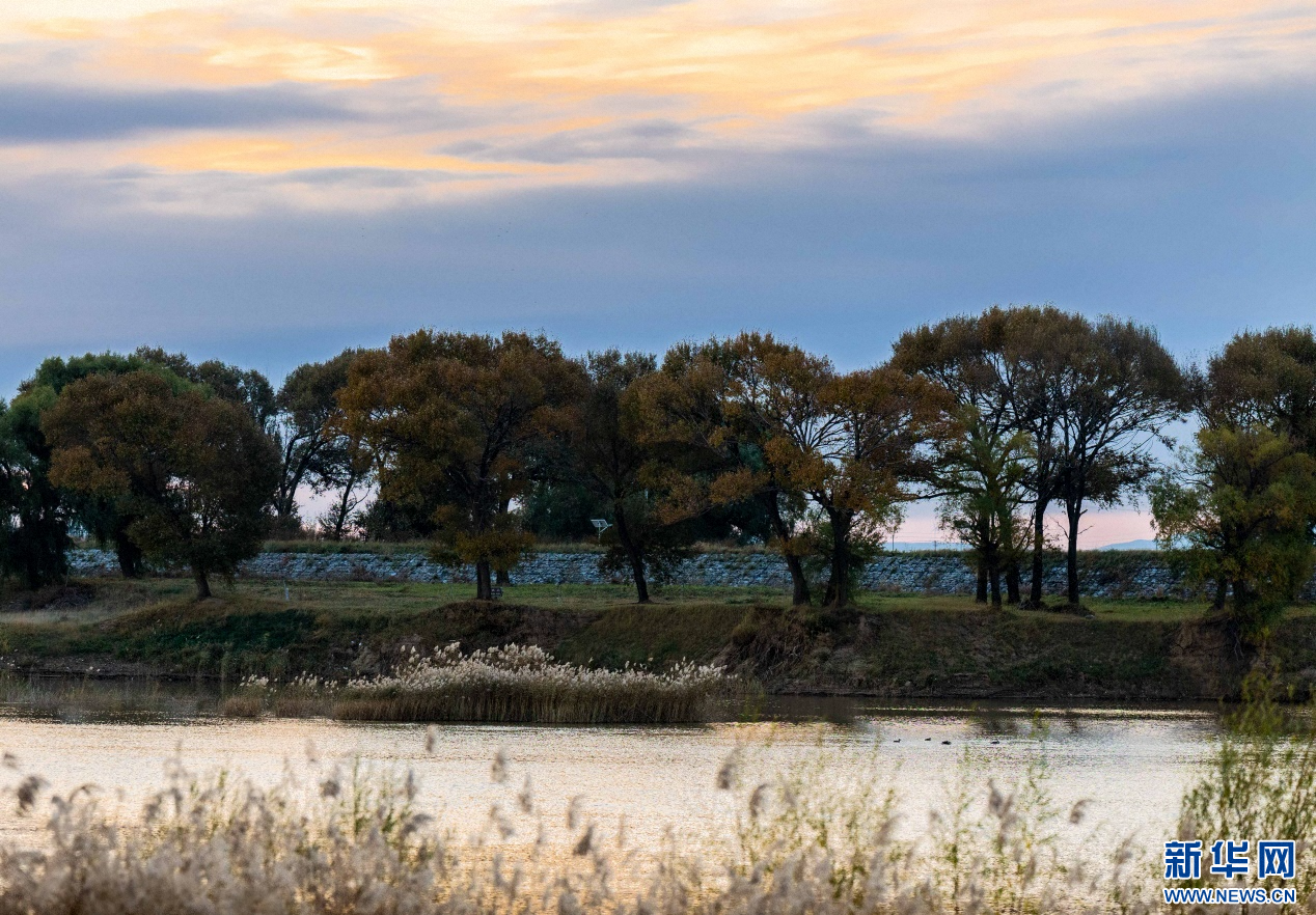 深秋時節(jié)的內(nèi)蒙古自治區(qū)呼和浩特市玉泉區(qū)大黑河郊野公園,碧水映紅霞,飛鳥舞秋風,勾勒出一幅醉人的秋日畫卷。