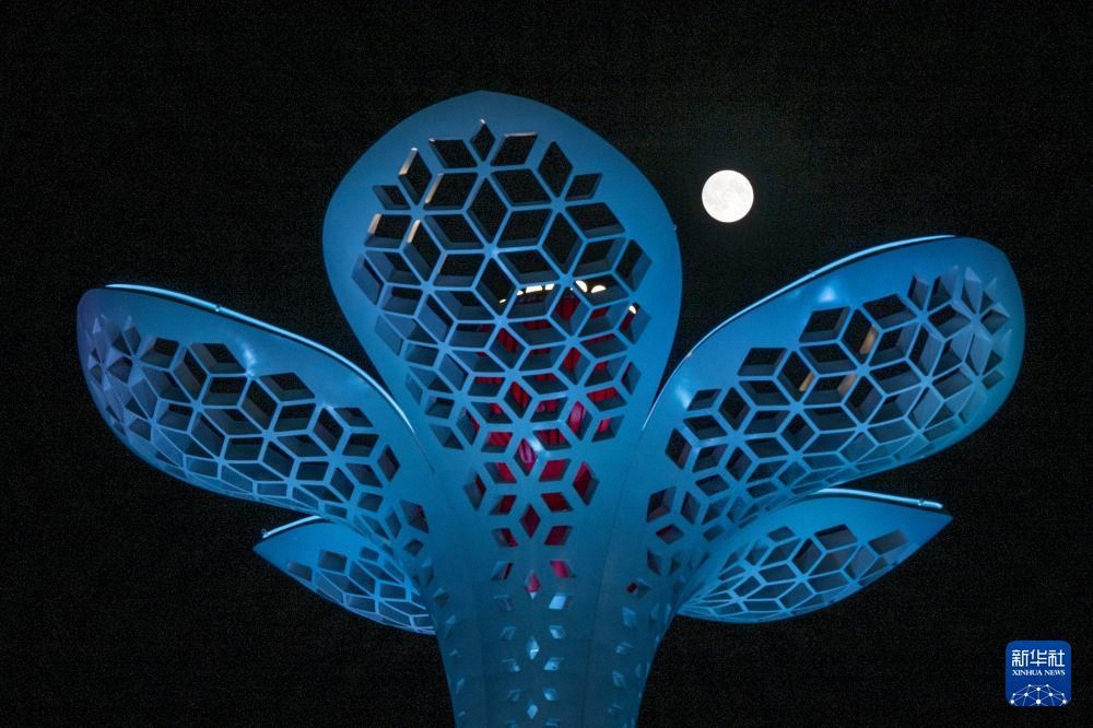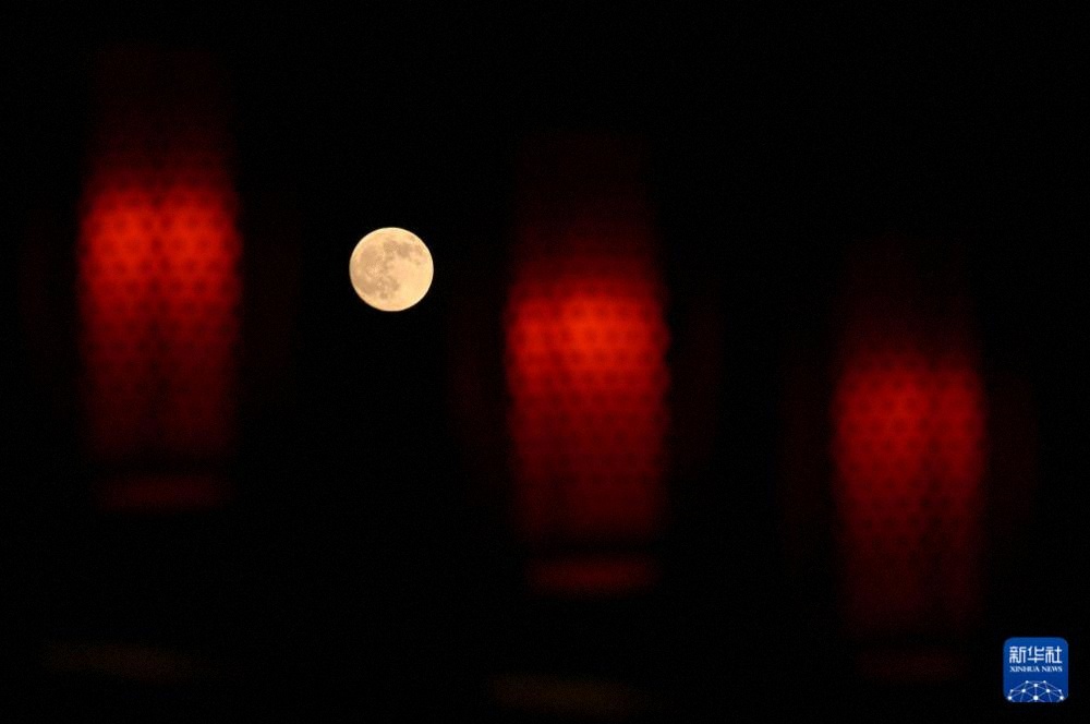這是10月6日在湖北省恩施土家族苗族自治州宣恩縣風(fēng)雨橋畔拍攝的月亮。新華社發(fā)(宋文攝)