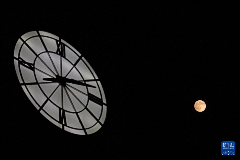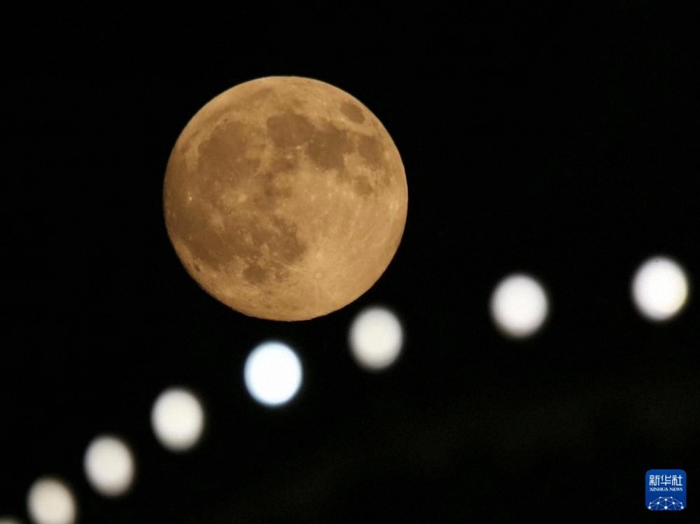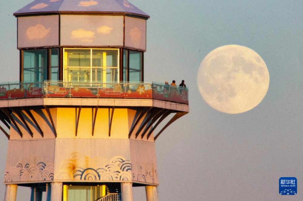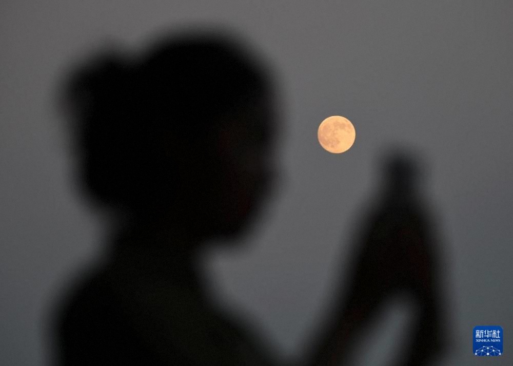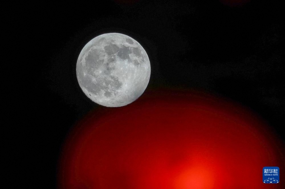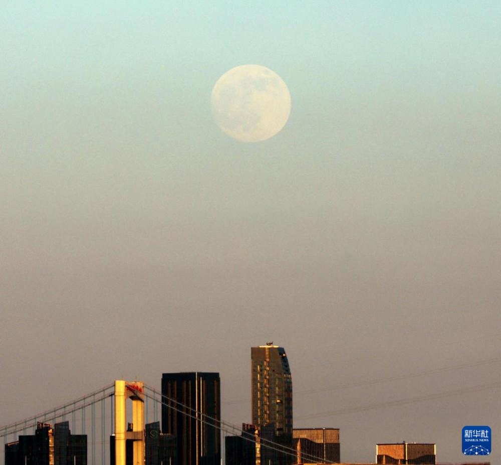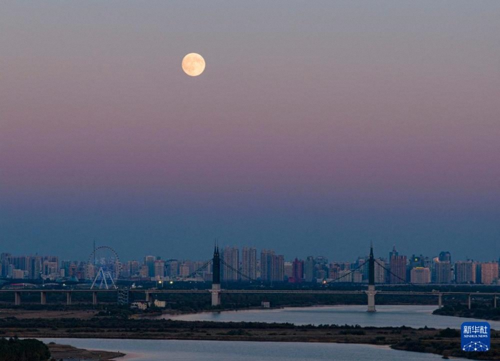10月6日在黑龍江省哈爾濱市拍攝的“超級(jí)月亮”。新華社發(fā)(張晏搏攝)