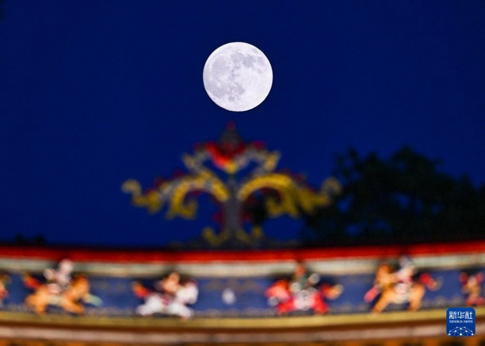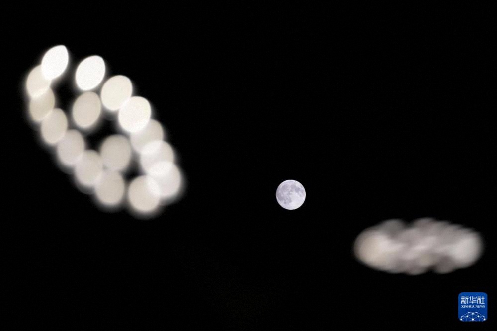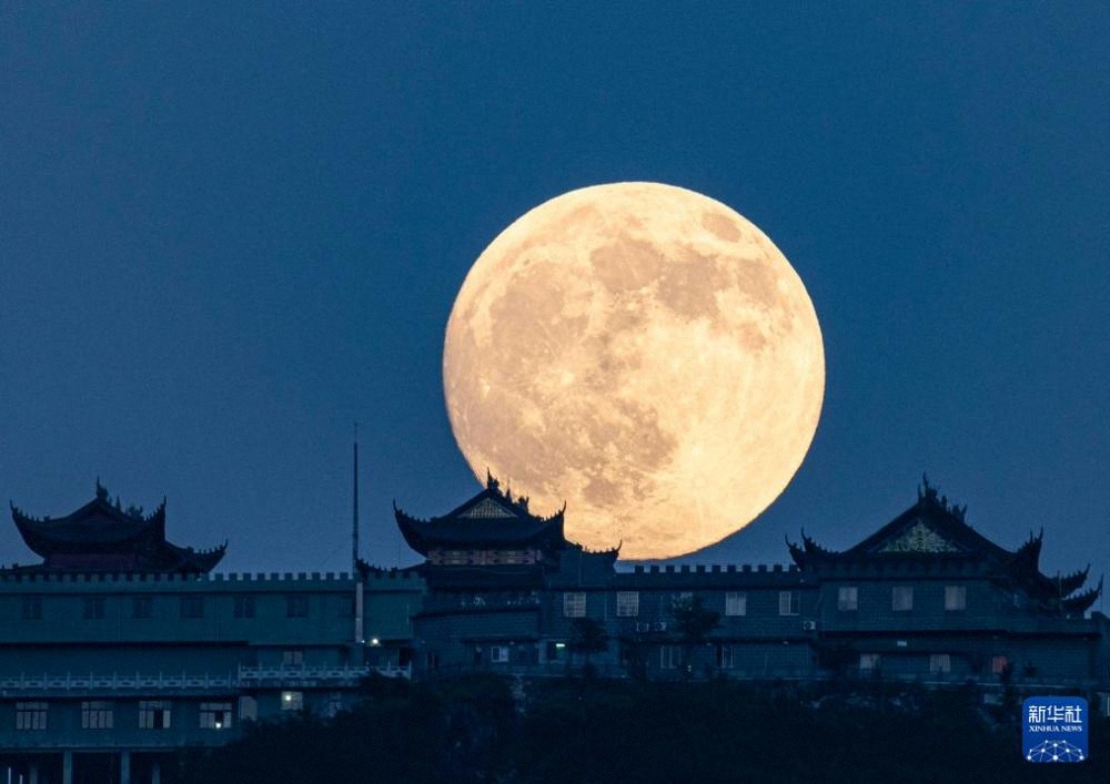 10月6日在貴州省銅仁市玉屏侗族自治縣拍攝的圓月。新華社發(fā)(胡攀學(xué)攝)