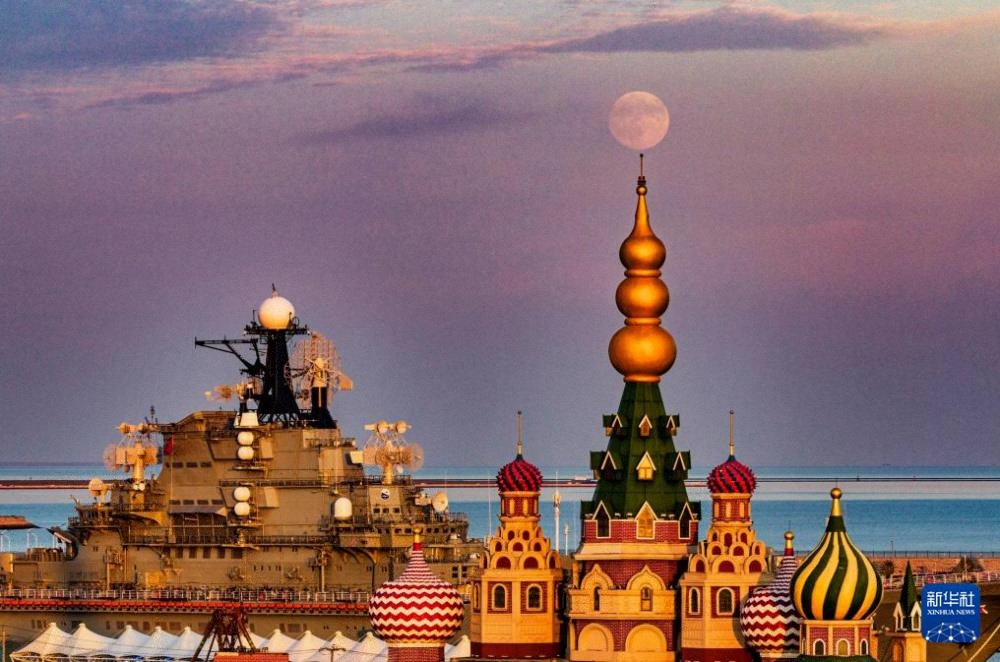 10月6日在天津市濱海新區(qū)泰達(dá)航母主題公園拍攝的中秋滿月(無(wú)人機(jī)照片)。新華社發(fā)(杜鵬輝攝)
