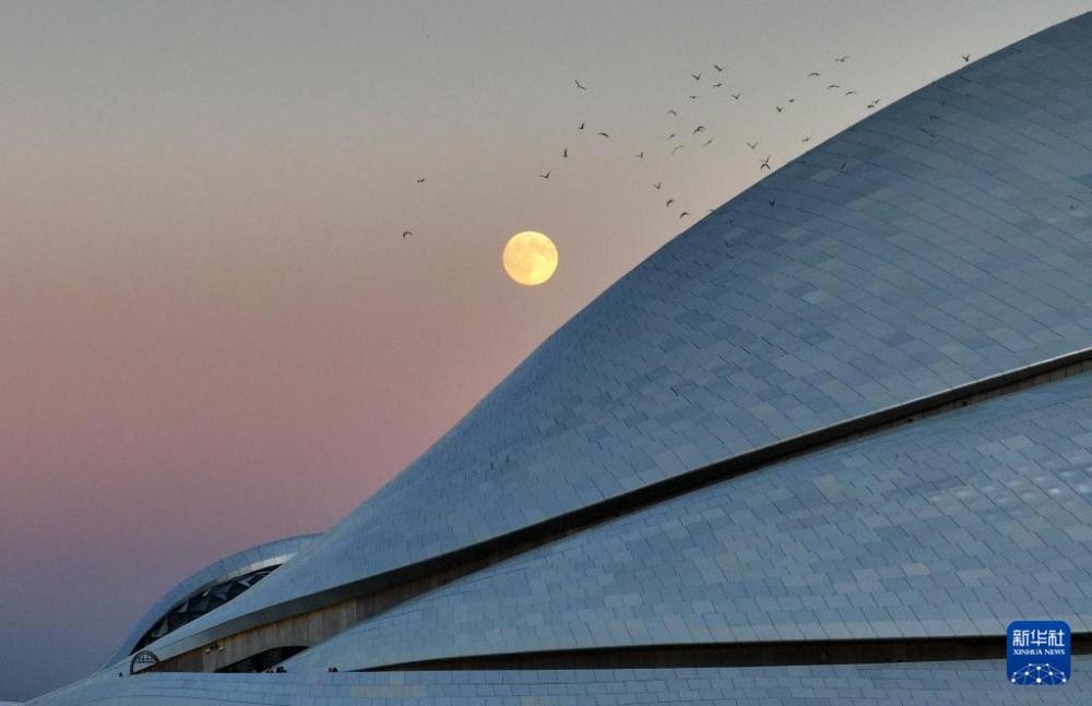 10月6日在黑龍江省哈爾濱大劇院拍攝的中秋滿月(無(wú)人機(jī)照片)。新華社發(fā)(張樹(shù)攝)