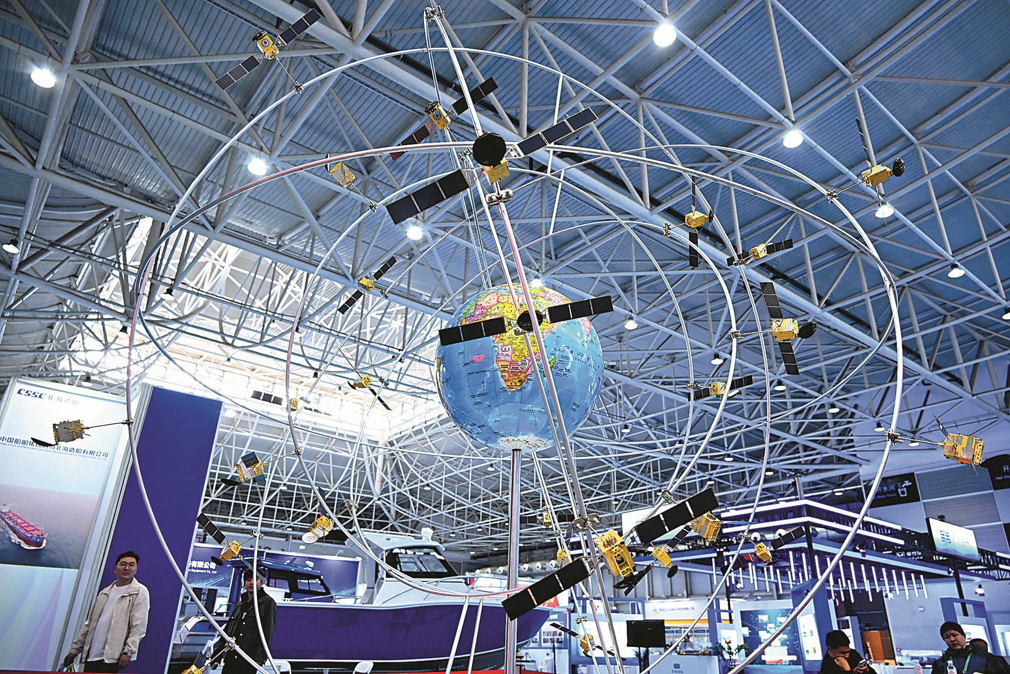 參觀者在2024東亞海洋博覽會上觀看北斗衛(wèi)星導航系統(tǒng)工作模型(資料照片)。新華社記者 李紫恒 攝