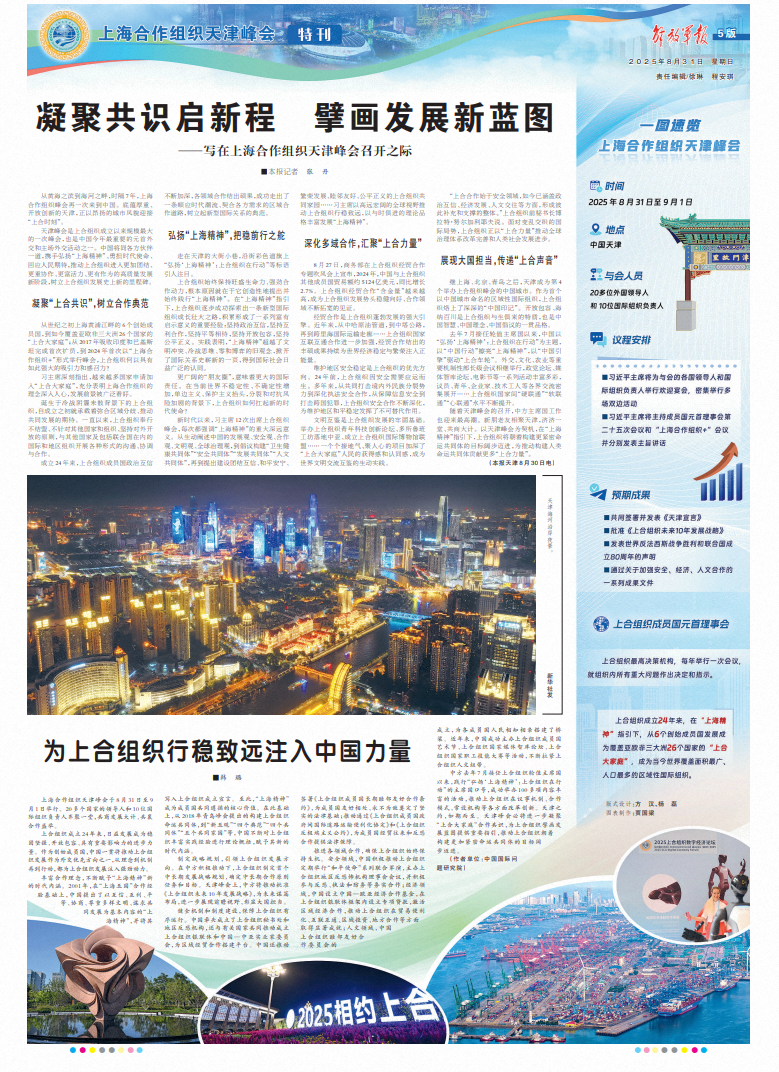 上海合作組織天津峰會于8月31日至9月1日舉行。20多個國家的領(lǐng)導(dǎo)人和10位國際組織負責(zé)人齊聚一堂,共商發(fā)展大計、共襄合作盛舉。