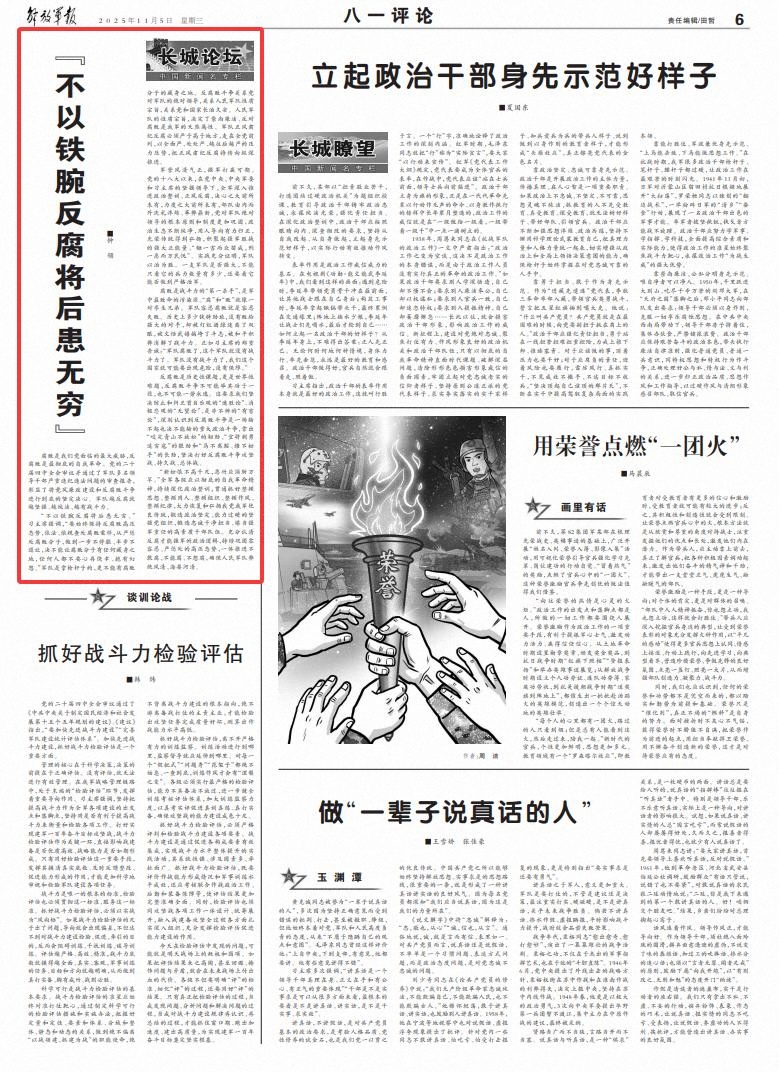 腐敗是我們黨面臨的最大威脅,反腐敗是最徹底的自我革命。黨的二十屆四中全會(huì)審議并通過了軍隊(duì)多名領(lǐng)導(dǎo)干部嚴(yán)重違紀(jì)違法問題的審查報(bào)告,彰顯了將黨風(fēng)廉政建設(shè)和反腐敗斗爭進(jìn)行到底的堅(jiān)定決心。軍隊(duì)越反腐就越堅(jiān)強(qiáng)、越純潔、越有戰(zhàn)斗力。