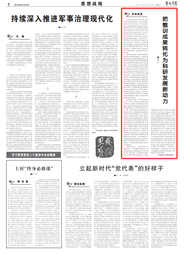 把整訓(xùn)成果轉(zhuǎn)化為科研發(fā)展新動(dòng)力