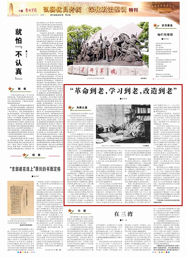 朱德既重視書本知識的學習,更重視在實踐中向群眾學習。他強調(diào):“我們一切力量都出于群眾身上,一切辦法也都由群眾創(chuàng)造出來?!薄榜R列主義最重要的一條精髓就是聯(lián)系群眾,向群眾學習?!薄耙撔南蛉罕妼W習,傾聽群眾意見,才能進步。不要老想著‘文章自己的好’?!?/p>