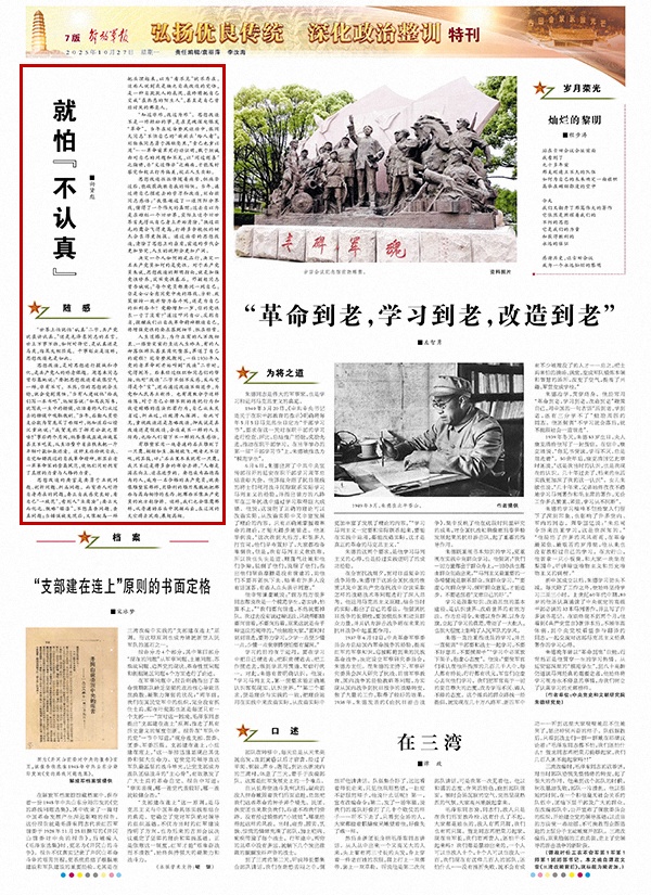 “世界上怕就怕‘認(rèn)真’二字,共產(chǎn)黨就最講認(rèn)真?!边@是毛澤東同志的名言。世上萬(wàn)事萬(wàn)物,如何對(duì)待它,是認(rèn)真還是馬虎,結(jié)果大相徑庭。干事創(chuàng)業(yè)是這樣,思想改造也是如此。
